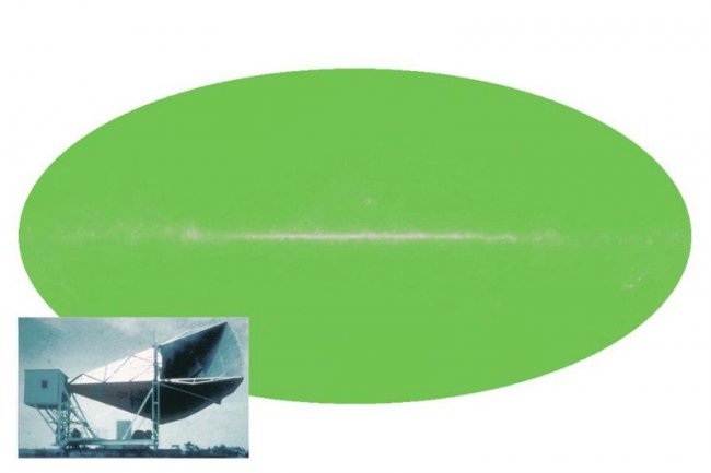Если бы мы могли видеть микроволновый свет, ночное небо выглядело бы как зеленый овал с температурой 2,7 Кельвина, с «шумом» в центре, внесенным горячими вкладами нашей галактической плоскости. Это равномерное излучение с чернотельным спектром свидетельствует о послесвечении Большого Взрыва: это космический микроволновый фон