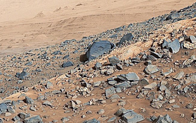 Чуть раньше другой пытливый исследователь, проводящий изыскания под ником UFOvni2012, обнаружил на Марсе буквы. Они попали в объектив камеры робота «Любопытства» (NASA’s Curiosity Mars rover), который находился в экваториальном кратере Гейла в местечке, получившим название «Garden City», у подножья горы Mount Sharp. Робот находился и снимал там на 938-й марсианский день.