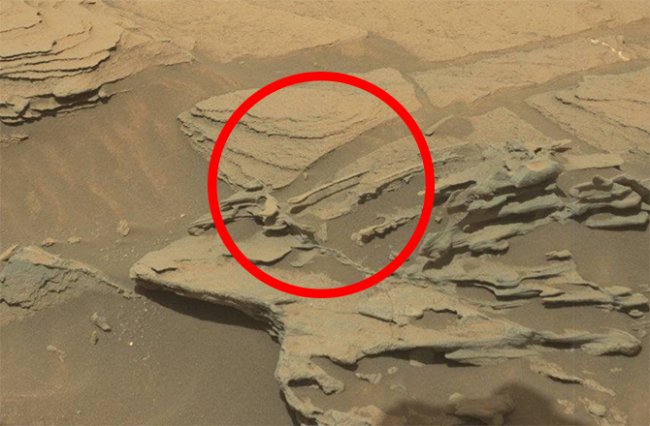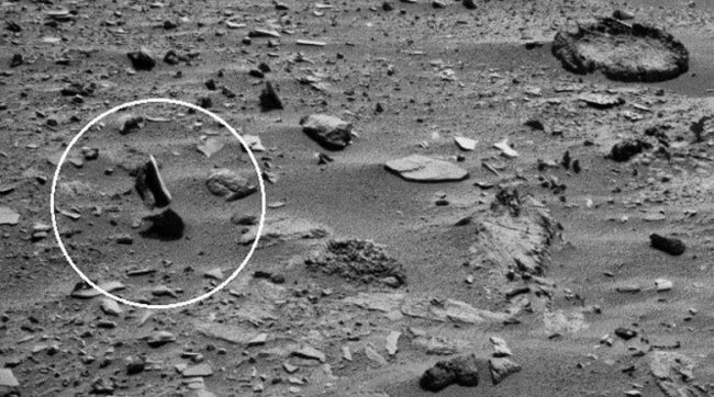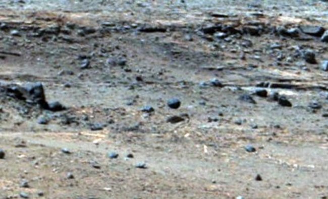 Уфолог Скотт Уоринг обнаружил на снимке НАСА небольшой светлый камень, который словно висит в воздухе. Под ним можно увидеть тень, так что левитация камня не обман зрения. От других камней этот камень находится слишком далеко, чтобы он мог каким-либо образом «держаться» за них.
