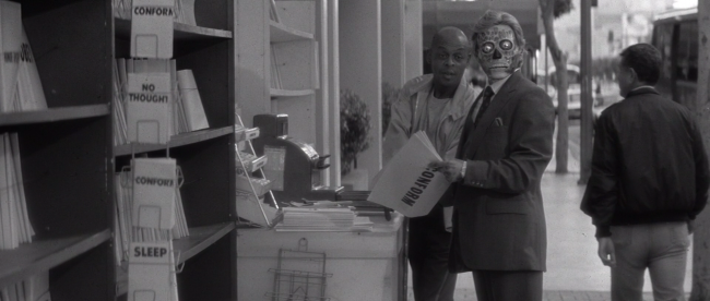 Инопланетяне давно уже здесь, просто мы этого не замечали до поры до времени. Кадр из фильма «Чужие среди нас», 1988