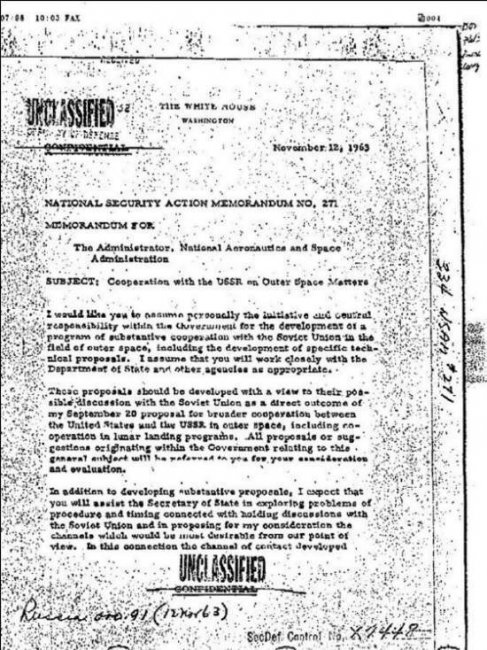 Конечно, временный фактор может быть простым совпадением, но он вновь дал пищу конспирологам, утверждающим, что 35-й президент был убит, чтобы помешать ему обнародовать информацию о пришельцах.По мнению Лестера, сообщить эту информацию ДФК не американскому народу, а Советскому Союзу. Кеннеди, считает учитель, очень тревожили отношения с Москвой. Президент боялся, что многочисленные НЛО, появлявшиеся в небе над СССР, в советском руководстве интерпретировать как агрессию со стороны США.