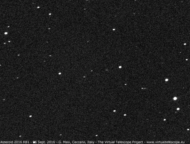 Итальянский астроном Джанлука Мази запечатлел приближение астероида к Земле вечером 6 сентября при помощи виртуального телескопа, расположенного в Чеккано.