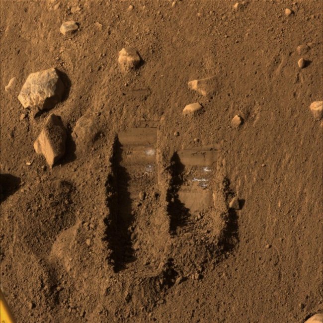 - Газовый хроматограф — Масс-спектрометр (GCMS), который должен был нагревать почву до разных температур и измерять молекулы, которые приобретают газообразную форму. Он мог измерить самые разные молекулярные составляющие с плотностью до нескольких частей на миллиард.