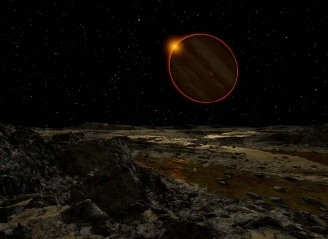 Юпитер и вовсе далеко от Солнца, это более чем в пять раз дальше, чем от светила находится Земля. Посмотрите, каким уже карликом кажется солнечный диск на спутнике Юпитера – Европе.