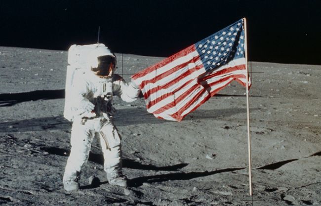 Во время всех миссий «Аполлон», в ходе которых люди посещали Луну, на спутнике Земли устанавливали американские флаги. Поскольку, в соответствии с международным договором, никто не может владеть Луной, флаги должны были выцвести через несколько лет под влиянием космической радиации.