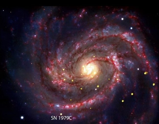 16. Вспышки на черной дыре в спиральной галактике M83 (известна также под названием Южная Вертушка), полученные с помощью космической рентгеновской обсерватории НАСА «Чандра». Южная Вертушка находится на расстоянии приблизительно 15 миллионов световых лет от нас. (Фото NASA):
