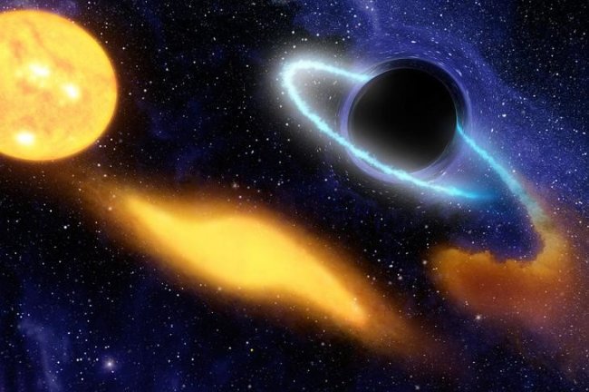 На рисунке художника изображена растущая супермассивная черная дыра. (Фото NASA):