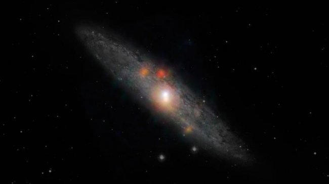 Масса спящей черной дыры примерно в 5 миллионов раз больше массы нашего Солнца. Черная дыра находится в центре галактики Скульптор, известной также как NGC 253. (Фото NASA):
