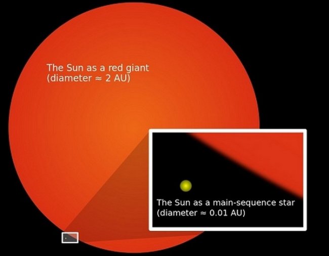 Солнце находится где-то посередине — оно не взорвется, но и не «сдуется». После того, как в Солнце закончится водородное топливо, оно начнет рушится само в себя под действием собственного веса, в результате чего ядро станет более плотным и более горячим. Это приведет к расширению Солнца, которое станет красным гигантом. В конце-концов, оно сожмется до белого карлика — крошечного звездного остатка невероятной плотности (размером с Землю, но массой с Солнце).
