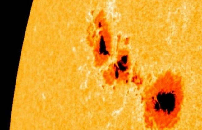 Иногда на поверхности Солнца можно наблюдать темные пятна, известные как солнечные пятна. Они имеют более низкую температуру (примерно на 1226 градусов Цельсия), чем остальная часть солнечной поверхности и появляются из-за колебаний магнитного поля Солнца. Некоторые из них могут быть достаточно большими, чтобы их можно было увидеть невооруженным глазом. Иногда появляются группы из более чем 100 солнечных пятен одновременно. Тем не менее, это случается чрезвычайно редко.