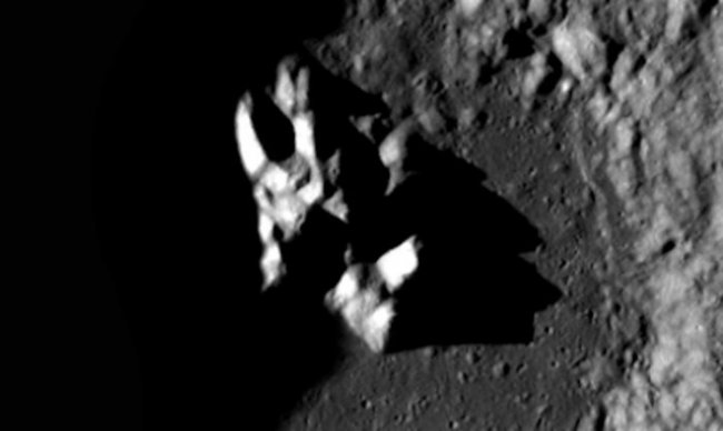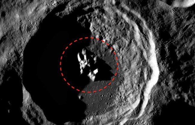 Он также отбрасывает тень, то есть это нечто действительно стоит на дне кратера и это не игра преломления света.