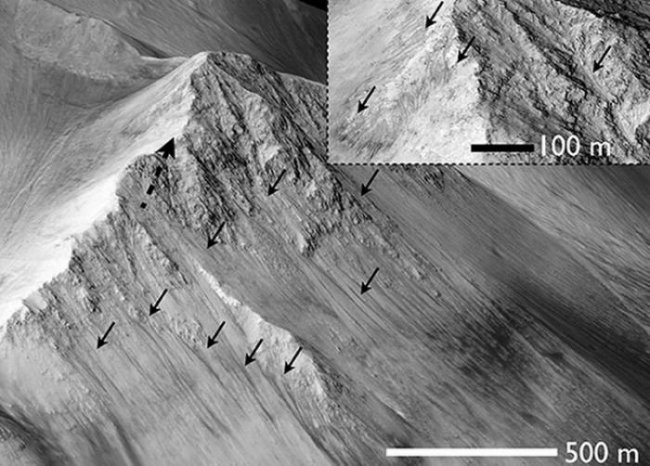 Специалисты пришли к выводу, что трещины в некоторых кратерах Марса позволили водным источникам подняться на поверхность в результате подземного давления. Затем воды просочились, оставив после себя на стенах кратеров ярко выраженные линейные рельефы.