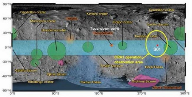 Вторая часть миссии, в ходе которой на поверхность был сброшен разрывной снаряд, проводилась в местности получившей обозначение S01. Оно также находится в окрестностях экватора астероида, но на довольно большом расстоянии от «Таматебако».