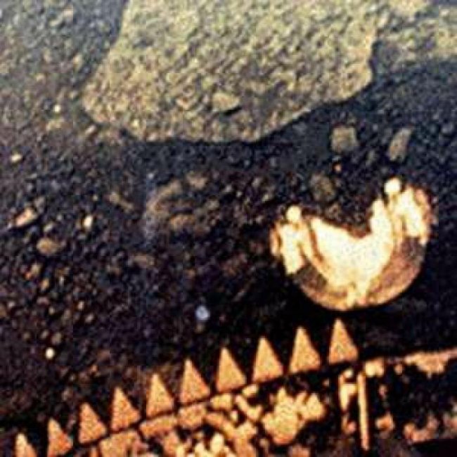 Это существо было снято «Венерой-13». Если вам покажется, что это обычный камень, знайте — камни не шевелятся. Этот объект промелькнул на нескольких снимках, а на остальных он отсутствует. В длину — сантиметров 15–17.