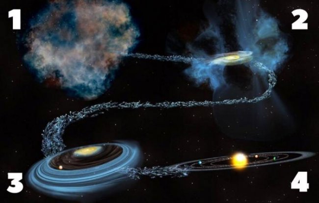 Предполагаемый возраст Солнечной системы – 4,6 миллиардов лет. В первую очередь, в центральной части газопылевого облака образовалось Солнце. Вокруг него, из вещества, оказавшегося за пределами центра, сформировался протопланетный диск. Позже из него возникли планеты, спутники и прочие космические тела.