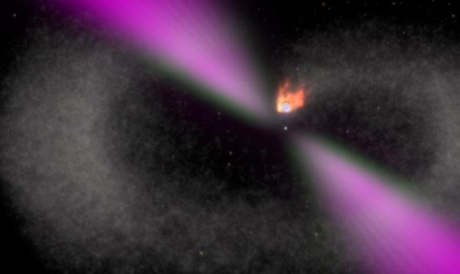 Нейтронная звезда остается от взрыва массивной звезды и зовется пульсаром. Черная Вдова пульсар миллисекундный, излучающий, к тому же, гамма-лучи. Он буквально пожирает вращающуюся вместе с ним небольшую планету.