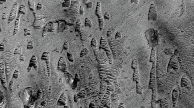 Американские учёные обнаружили на поверхности Марса сотни углублений в форме полумесяца, так называемые призрачные дюны.