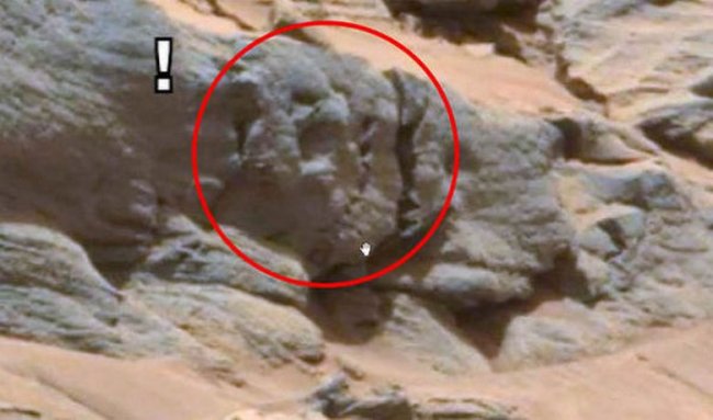 Этот фантастический череп обнаружил известный в Сети интернет журналист-уфолог Джо Уайт, который рассматривая фотоснимки, присланные аппаратом Curiosity, вдруг заметил на чужой планете вот такое чудо.