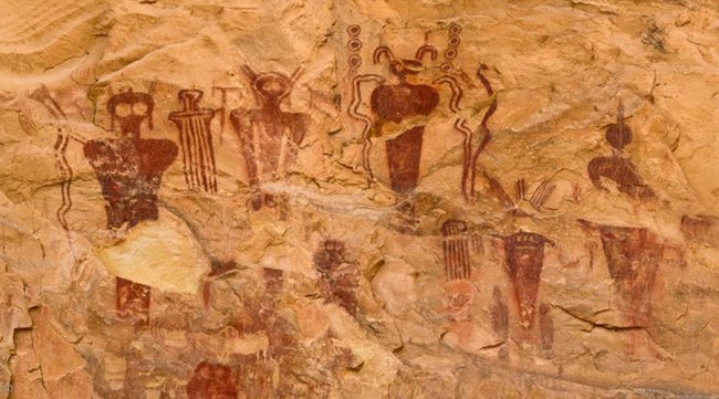 Существуют сотни необъяснимых наскальных рисунков в пещерах по всему миру. Прекрасный пример, подтверждающий палеоконтакт, расположен в районе Сего Каньона, штат Юта. Ученые датируют местные рисунки еще 5000 годом до н.э. Между тем, изображены здесь непохожие ни на что странные существа с большими телами и огромными головами и глазами, которые спустились с небес, чтобы создать свои племена. Эта же история повторяется по всему миру, от Китая до Европы.
