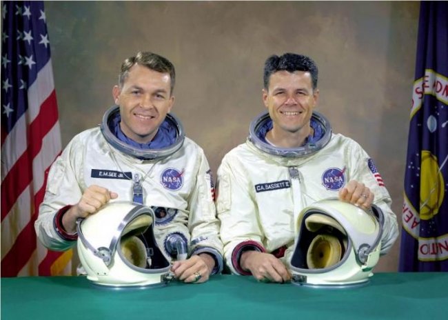 В феврале 1966 года летчики Чарльз Бассет и Элиот Зее погибли при подходе к Ламберт-Филд в Сент-Луисе. Причиной происшествия стала плохая погода. Рухнувший самолет Т-38 оказался в 150 метрах от имитатора Gemini 9, который готовился для их же тренировки.