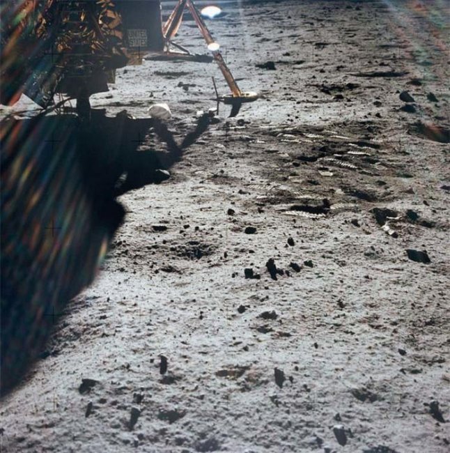 Кроме того, справедливости ради надо отметить, что на втором снимке отображён след, который вовсе не принадлежит Армстронгу, его владельцем является Базз Олдрин