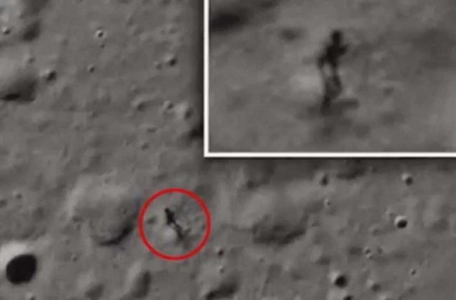 Виртуальные уфологи регулярно находят на Луне множество аномалий. Например вот эта похожа на шагающего по луне гуманоида