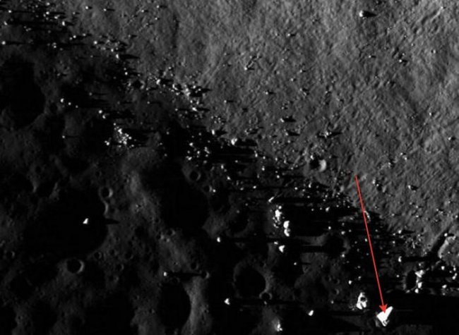 По официальной аннотации к фото, это участок в 900 метров знаменитого и самого большого на Луне кратера Циолковского. Расположен он на обратной стороне спутника и охватывает округлую площадь диметром в 180 километров. Кстати, публикуя этот снимок, сотрудники NASA предлагают пользователям Сети рассмотреть булыжники, что скатились со склона, а пирамиду, которая, с одной стороны, резко выделяется ярко белым пятном на фоне темной поверхности, а с другой – отличается слишком правильным геометрическим построением, словно не замечают. А может, так оно и есть: каждый видит то, что хочет или может?..