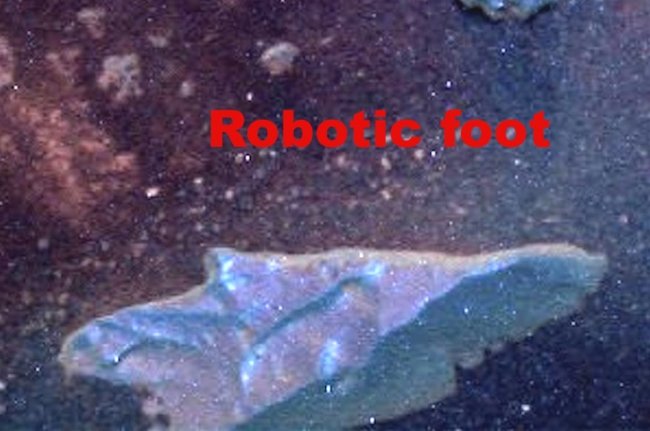 На том же снимке с «головкой» чуть ниже, у левого угла можно найти плоский камень, на котором видны два углубления, похожие на отпечатки стоп. Возможно ли, что их оставил тот же «робот», которому принадлежит «головка»?