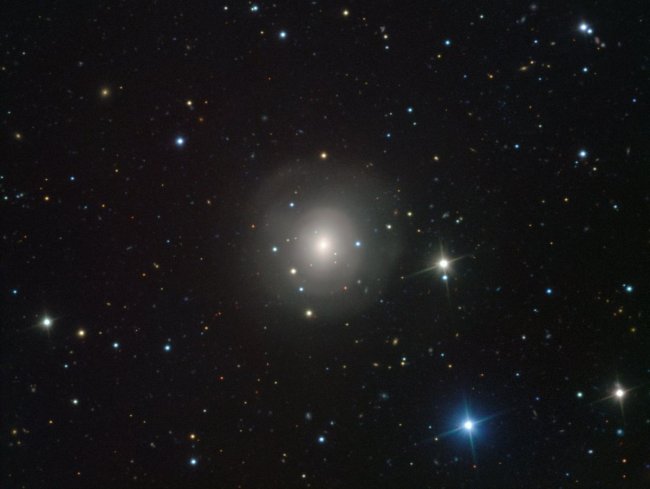 Снимок VIMOS, на котором запечатлена галактика NGC 4993, демонстрирующая слияние пары нейтронных звезд в видимом свете