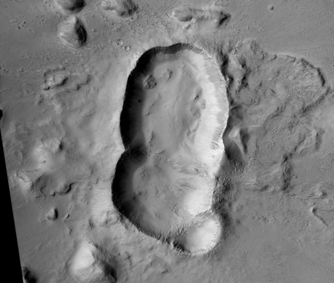 Конкретно этот кратер (в настоящее время безымянный) находится в вулканических равнинах Elysium Planitia, примерно в 900 километрах от вершины вулкана Elysium Mons, 12,6 километра высотой. Он также расположен в 2000 километрах к северу от того места, где сейчас находится марсоход «Кьюриосити». В распоряжении NASA поэтому имеются поразительно подробные спутниковые снимки конкретно этого кратера.