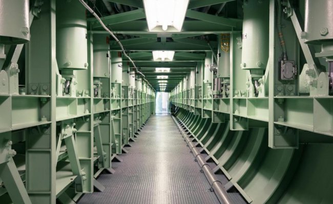 Сам бункер начинается в 10 метрах от поверхности. От внешнего вторжения его надежно хранят бронедвери из бетона и стали. Толщина каждой — примерно полметра. Пол, стены и потолок смонтированы на гигантских амортизаторах, чтобы дать операторам несколько лишних минут в случае возможной атаки.