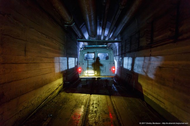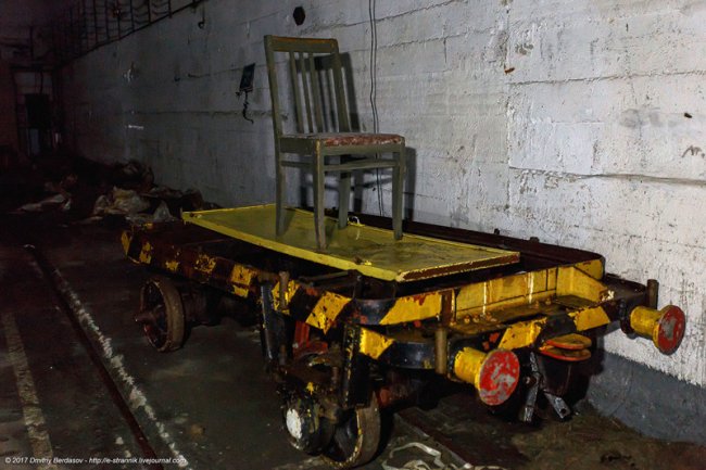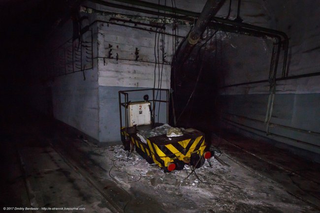 Перемещение грузов осуществлялось по подземной узкоколейной железной дороге.