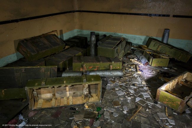 Судя по всему, это корабельные снаряды. После подписания Договора о ликвидации ракет средней и малой дальности, в соответствии с которым с базы было вывезено всё ядерное вооружение, подземные помещения стали использовать как базу хранения Анадырского военного гарнизона.