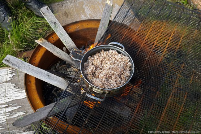 Дойдя до заброшенного дома, где в одной из комнат мы спрятали свои вещи, приготовили обед. После обеда мы двинули в заброшенный поселок Гудым-1, где находилась бывшая советская база РВСН. Я про неё уже писал. Кому интересно, пост тут — http://e-strannik.livejournal.com/249668.html.