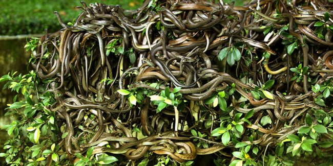 У берегов Бразилии, чуть южнее центра Сан-Паулу лежит Змеиный остров. Это не просто название. На одном квадратном метре Queimada Grande живет от 1 до 5 змей в основном уникального вида Островной ботропс — невероятно ядовитого, и отнюдь не маленького по размерам. Вам туда не надо!