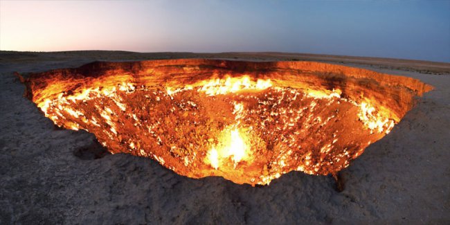 Во время бурения в Дервезе в Туркменистане в 1971 году геологи случайно обнаружили подземную пещеру, заполненную природным газом. Грунт под буровой установкой рухнул, оставив большое отверстие диаметром около 50-100 метров. Чтобы избежать выбросов ядовитого газа, ученые решили поджечь дыру. Геологи надеялись, что огонь погаснет через несколько дней. Но с тех пор он горит. Местные жители назвали пещеру «Врата ада». Удивительное место, но вам туда не надо. Туркменистан и сам по себе место не для людей.