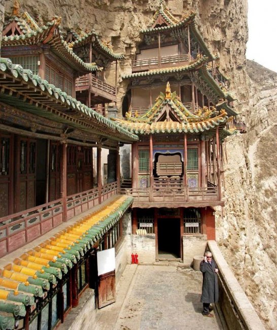 Когда-то люди строили храмовые комплексы, монастыри в скалах. Сейчас такие места привлекают лишь туристов, но раньше люди действительно там жили. «Висячий монастырь» находится в Китае, построен он был в 491 году. В монастыре вдоль отвесной стены расположено около 40 залов и павильонов. Здания держатся на деревянных сваях, упирающихся в скалу. Сама скала используется также как задняя стена помещений, выемки в скале сделаны для изображений и статуй Будды. Монахи все-таки отважные ребята.