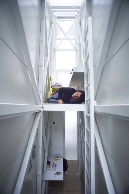 Этот дом — странное архитектурное сооружение. Технически это арт-инсталляция, но может функционировать как настоящий дом и принимать туристов, а еще в нем есть один постоянный жилец. Этот дом примечателен тем, что он очень узкий — в самой узкой части всего 0,92 метра, а в самой широкой — 1,52 метра. Неужели в такой узкой щели можно жить? Ну уж точно не клаустрофобу! Дом Керет находится в Варшаве (Польша) и «зажат» между двумя зданиями. В доме есть все необходимые комнаты — ванная комната, гостиная, спальня. А к электричеству он подключен от соседних зданий.