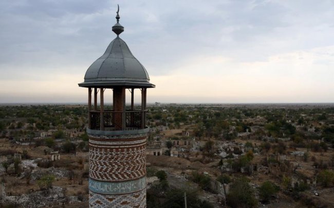 Во время войны 1993 года все населения Агдама было вынуждено сбежать на восток. Враг, занявший город, разрушил большую его часть. Одним из уцелевших зданий является мечеть, которая хоть и не избежала серьезных повреждений, но все еще стоит в одном из районов города-призрака.