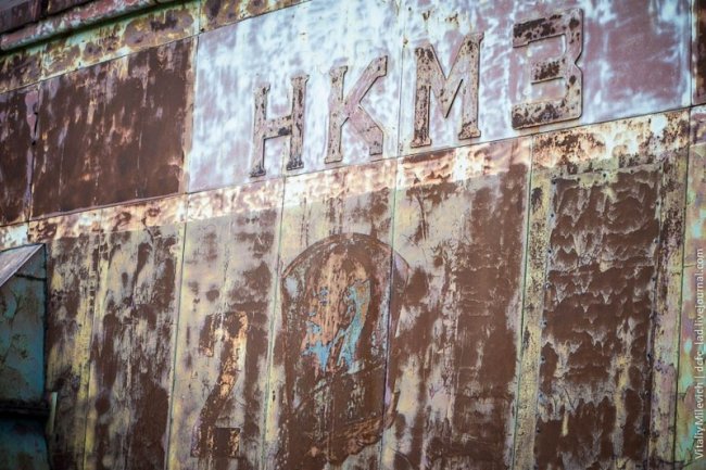 НКМЗ — Новокраматорский машиностроительный завод. Среди ржавчины еще проступает профиль Ленина.