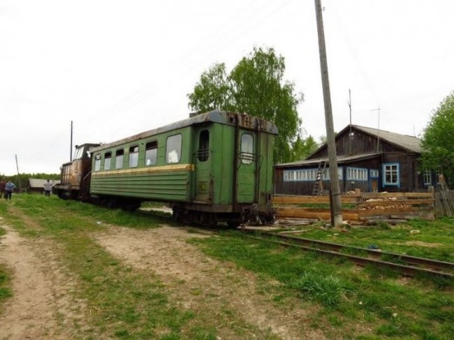 До этого Опарино и можно доехать раз в две недели вот на таком поезде. Зимой, правда, появляется возможность выбраться отсюда на зимнике.
