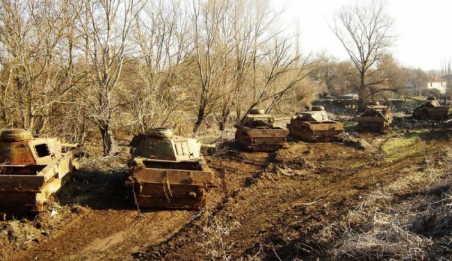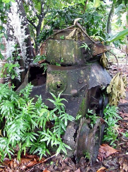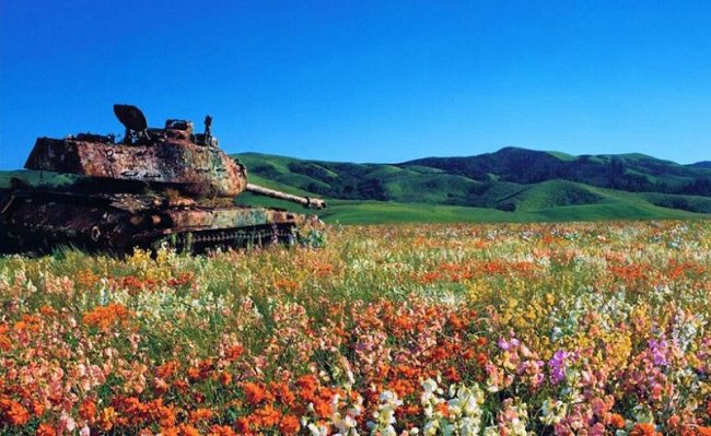 Даже суровые танки и другая военная техника, способная выдержать прямые попадания снарядов, бессильна перед дикой природой. Железные машины для убийства зарастают мхом и становятся импровизированными клумбами для растений.