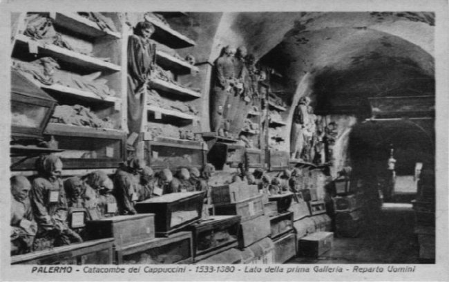 В 1599 году монахи-капуцины сделал шокирующее открытие во время эксгумации тел, которые извлекли из катакомб под монастырем в Палермо — многие тела мумифицировались естественным образом. Особенности почвы и микроклимата препятствовали разложению тел. После этого открытия монахи решили мумифицировать одного из своих умерших — Сильвестро из Губбио — поместив усопшего в катакомбах. Вскоре в катакомбы начали сносить тела умерших монахов и даже знатных горожан Палермо.