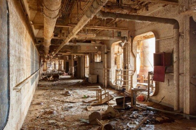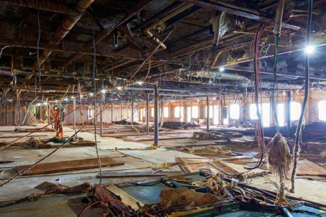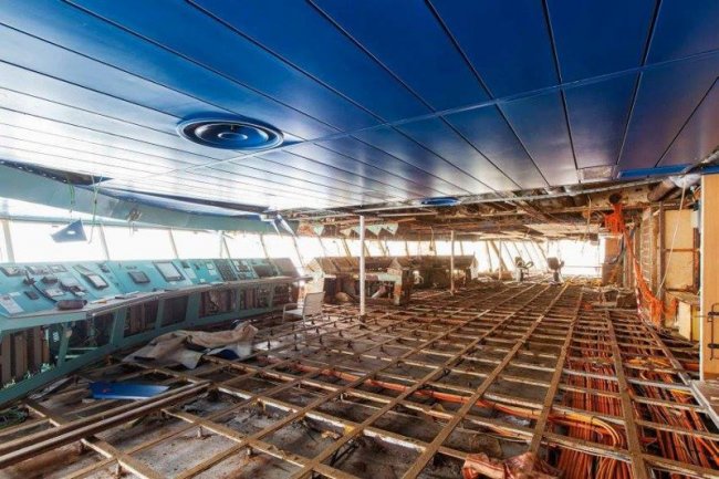 Капитанский мостик. Хорошо видно какая часть была под водой, а что осталось над водой.