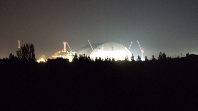 Заселившись, мы поднялись на крышу, откуда открывался впечатляющий вид на ЧАЭС и новое укрытие четвертого энергоблока.