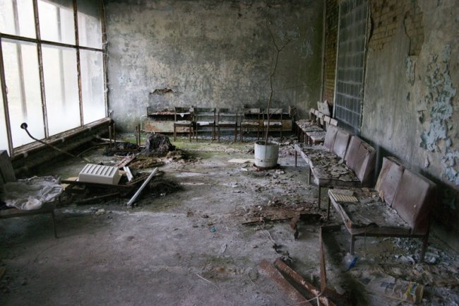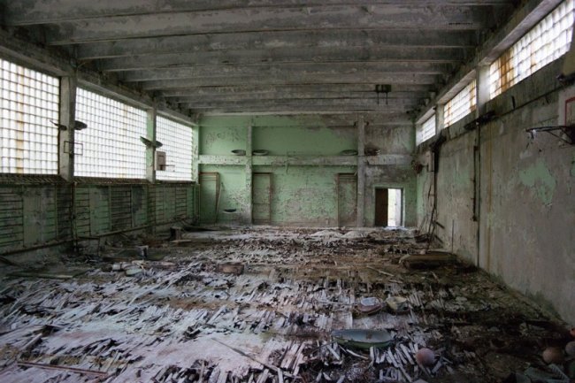Одним из самых грязных объектов во всей Припяти считается медсанчасть №126. Вернее, небольшой ее подвал. В первые дни после аварии в медсанчасть привозили пожарных, получивших смертельные дозы облучения. Их одежду, буквально светившуюся радиацией, сбрасывали в подвал. Среди исследователей Припяти время от времени находятся отчаянные парни, рискующие спуститься туда. На первом этаже здания валяются их белые защитные костюмы и перчатки.