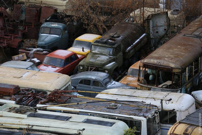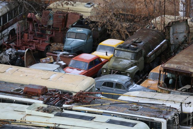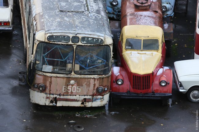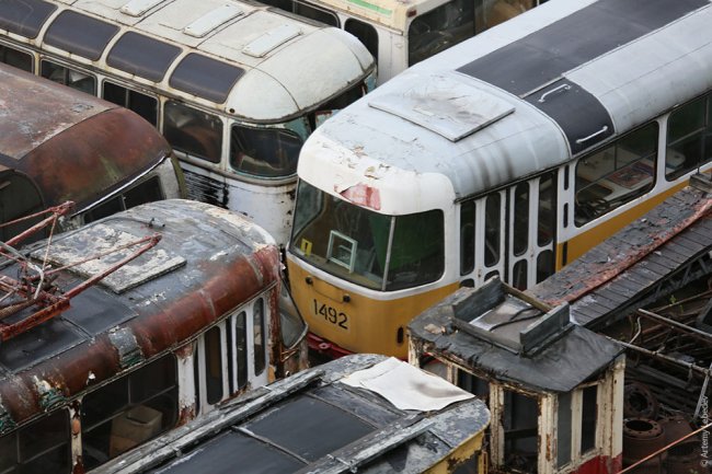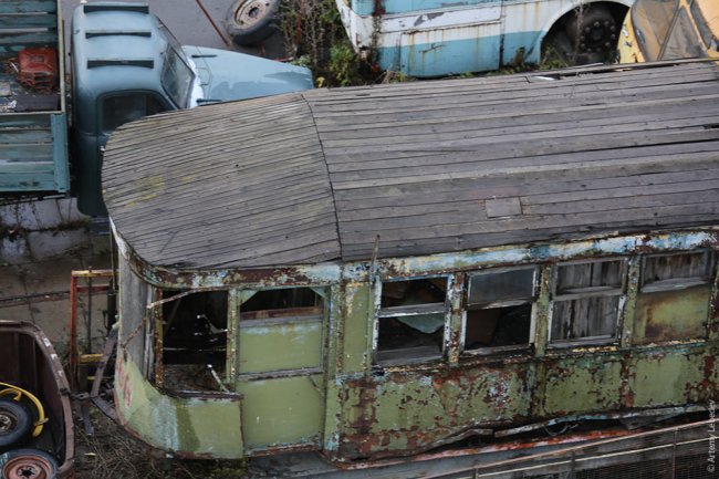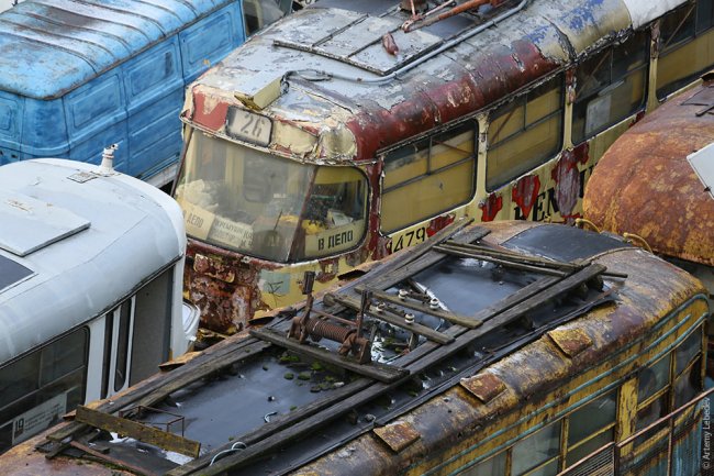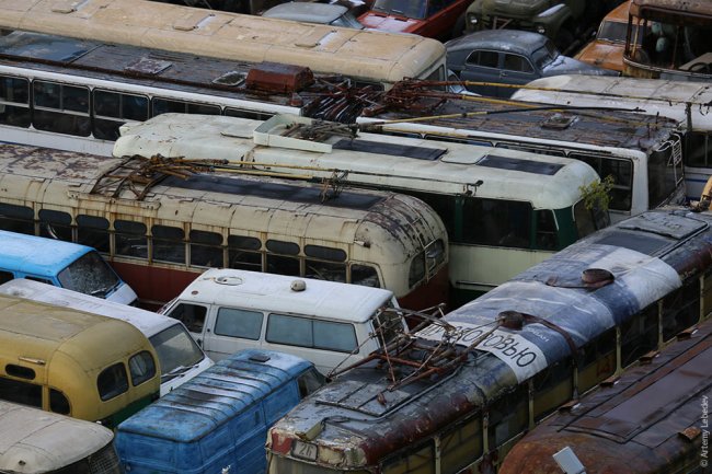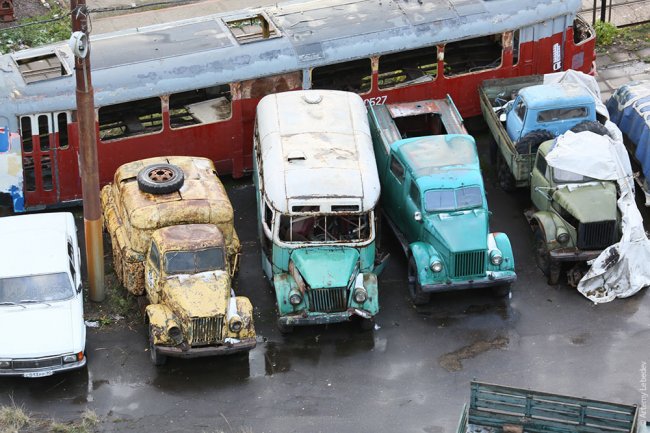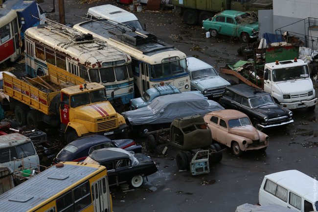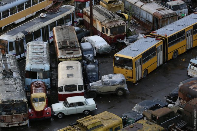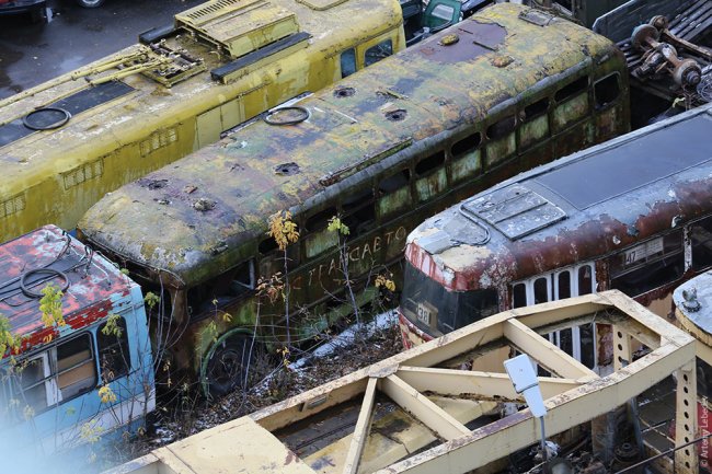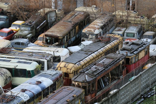 На улице Волочаевской за забором трамвайно-ремонтного завода спрятано огромное количество списанных автомобилей, автобусов и трамваев. Вся эта красота медленно разлагается, вместо того, чтобы радовать взрослых и детей.