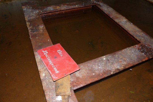 Батарея на камере уже садилась, и это одна из последних фотографий, которую успели сделать парни. Дверь в какой-то резервуар
