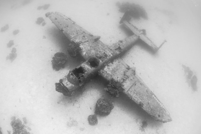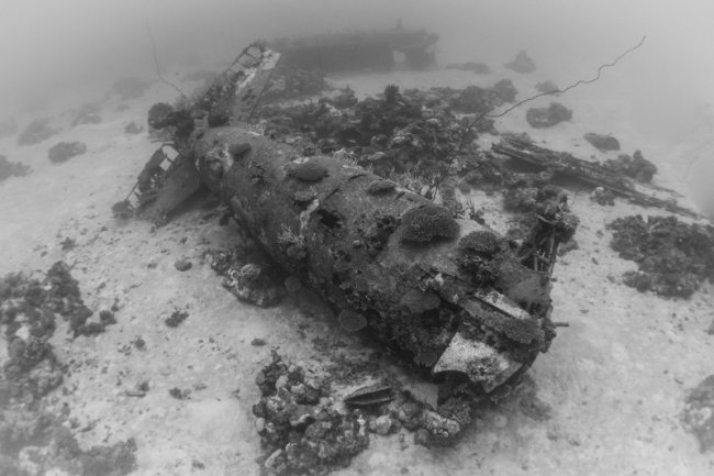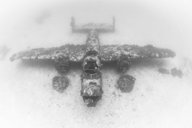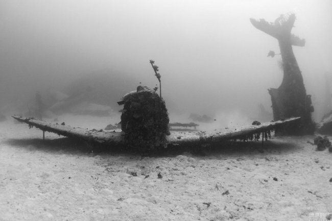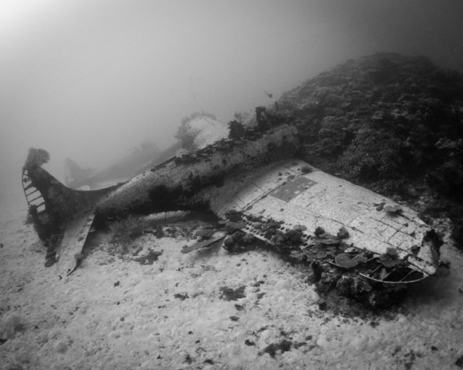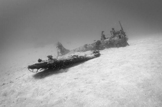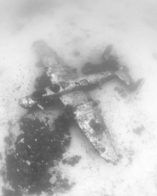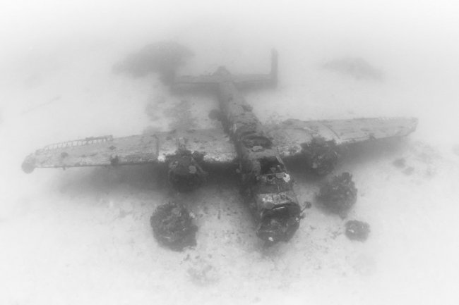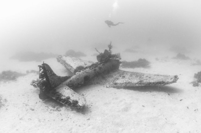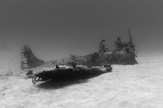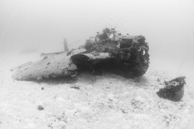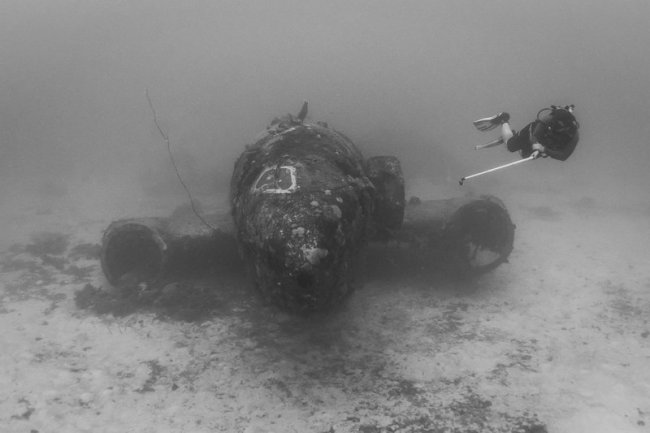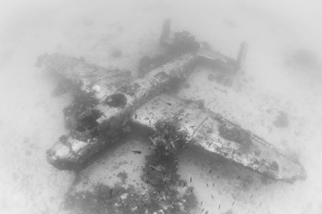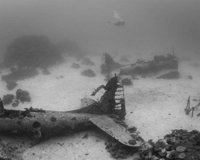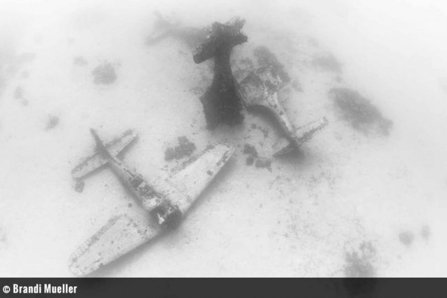 Фотограф Бренди Мюллер (Brandi Mueller) запечатлел утонувшие военные самолеты США у берегов Маршалловых островов в Океании, которые были подбиты во время воздушных сражений.