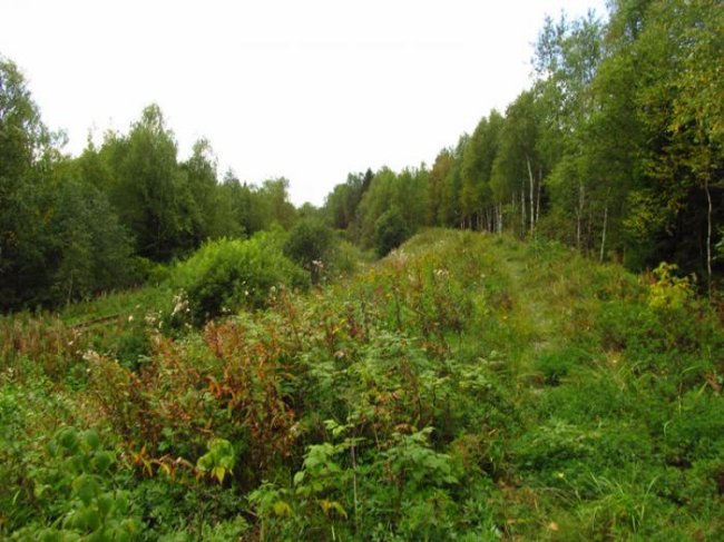 Внизу слева идут железнодорожные рельсы. К базе ведёт та колея, что правее, старая и ржавая — впрочем, она так заросла травой, что на фотографии с первого взгляда кажется просто тропинкой.